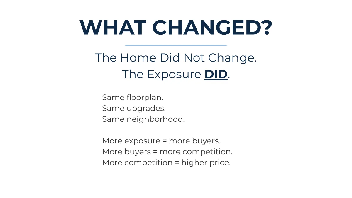 Even when two homes have nearly identical floorplans, the final sale price can vary significantly depending on pricing strategy, presentation, marketing exposure, and buyer demand at the time the property is listed. The Birch Lane example shows how a strategic relaunch and expanded marketing campaign created stronger buyer competition and a higher final sale price.